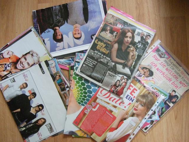 Turiu labai daug plakatų, straipsnių ir iškarpų su šiomis įžimybėmis: Lady gaga, Taylos Swift, Rihanna, Selena Gomez, Rita Ora, Ashley Tisdale, Avril Lavinge, Beyonce, Kesha, Miley Cyrus, Katy Perry, Demi Lovato, Shake it up (Bella Thorne, Zendaya Coleman) , iCarly, Bratz, Little mix, Johny Depp, kiniečių ir japonų muzikos grupės, One Direction, Big Time Rush, Justin Bieber, Conor Maynard, Austin..Turiu ir daugiau plakatų. Kainos įvairios, perkantiem plakatus pridedu nemokamai iškarpų. :)