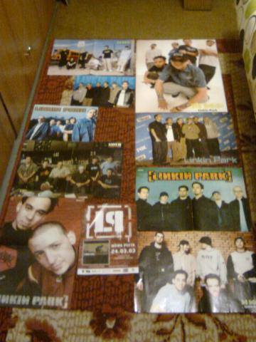 Linkin Park, Evanescence, Leonardo di Kaprio, The Rasmus plakatai, vieni jau labai seni ir jau ne kartą buvę ant sienos, todėl kampučiai truputį nusidėvėję, kiti be trūkūmų.