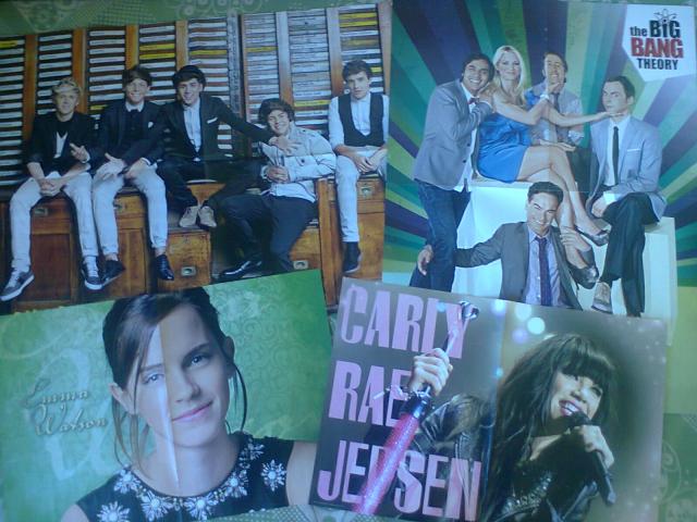 Turiu One direction, The big bang theory, Nina Dobrev, Glee, Miley Cyrus, Justin Bieber, Taylor Lautner, Taylor Swift ir t.t. plakatų.