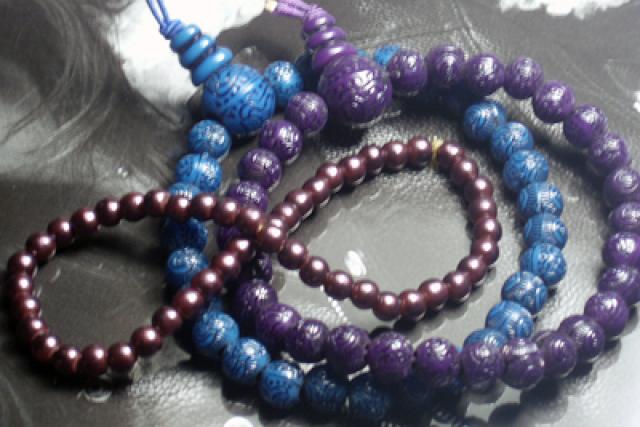 ant mėlynos ir violetinės karoliukų išraižyti Budos atvaizdai :)
