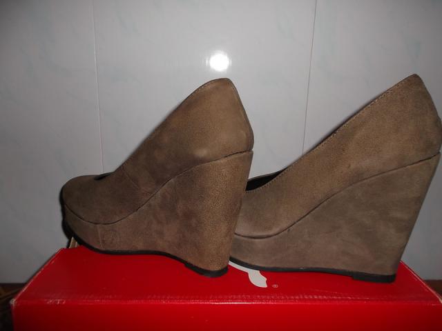 Naujos, nuotraukose atrodo aptrintos, bet taip nėra, tai yra zomšas, todėl taip atrodo. Man netinka.