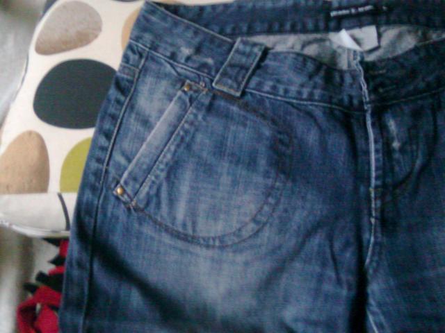 platūs ir platėjantys džinsai, ilgai nešiojau, bet nelabai nusinešiojo, yra tik vienas defektas, matosi paskutinėje nuotraukoje, kad šiek tiek nudilę galiukai. Šiaip labai įdomūs džinsai