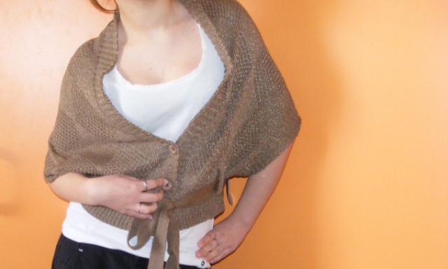 Labai gražus rudas megztukas su plačiomis rankovėmis.