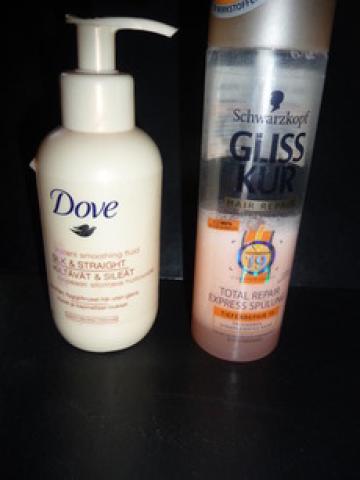 Dove plauku kremas (siek tiek daugiau nei puse) ir Gliss kur purskiamas kondicionierius (siek tiek maziau nei puse). Kadangi vistiek nenaudoju, abu atiduodu simboliskai po 3 lt :)