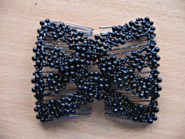 Graži, juoda plaukų sagė iš karoliukų.