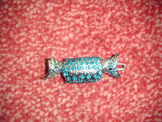 Plaukų segtukas saldainis su žydrais blizgiais akmenukais. visi savo vietose. Mainai nedomina:)