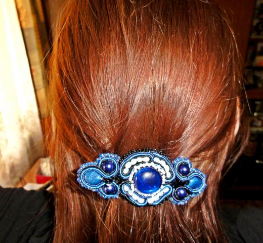 Rankų darbo karoliukų ir sutažo segtukas/segė į plaukus.