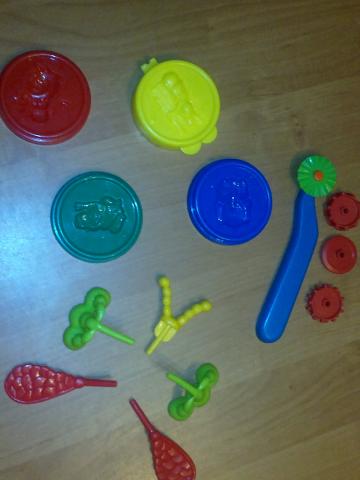 Peilis su 3 skirtingais antgaliais ir formos plastilinui. PlayDoh bites detales: kojites, sparnai ir usai, isistato i plastilinini bites kuna.