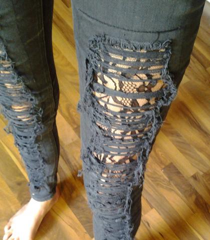 Juodi plesyti dzinsai,po paplesymais prideta geleta juoda medziaga