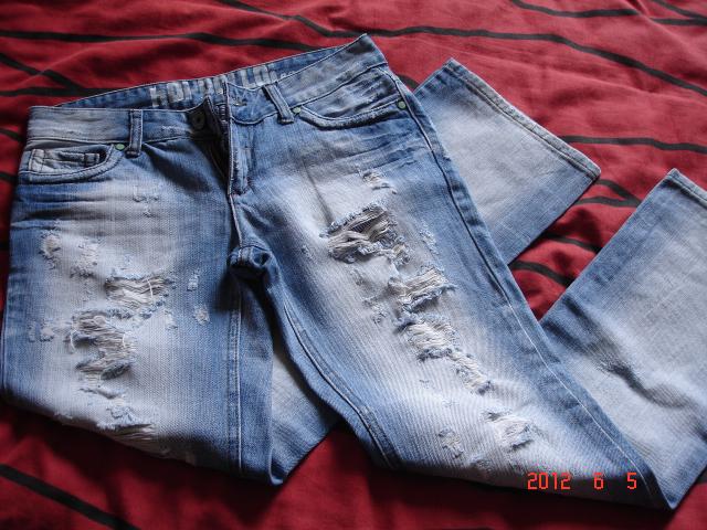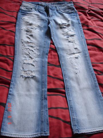 Labai grazus,madingi plesyti dzinsai.Deveti tik vienasyk,todel kaip nauji.Siek tiek elastiniai.Moketa uz juos 25eurai,pirkti Airijoje.Visas ilgis 95cm.,juosmens plotis 39cm.