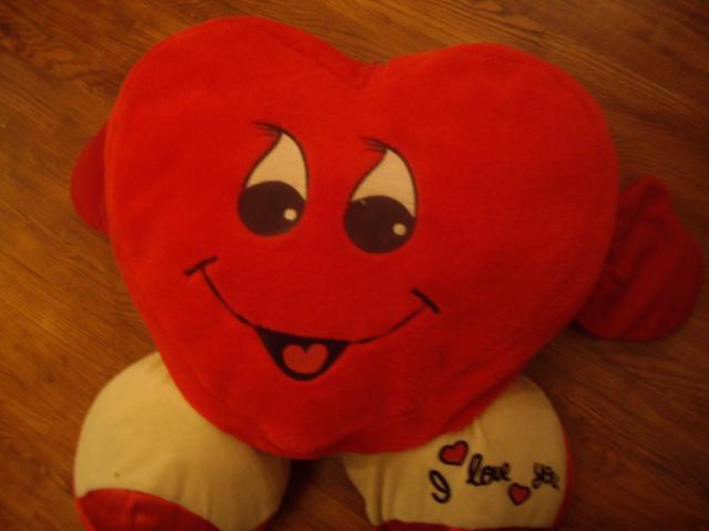 Pliušinė pagalvė-žaislas širdelė. Ant kojytės parašyta ,,I love you''.