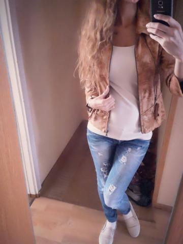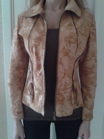 Striukė šviesiai rusvos spalvos, be pamušalo, įliemenuota. Ilgis 56, pečiai 40, rankovės 56, krūtinės apimtis 44x2, liemuo 39x2. Mainai nedomina. Siunčiu, + siuntimo išlaidos 1,80 Eur.