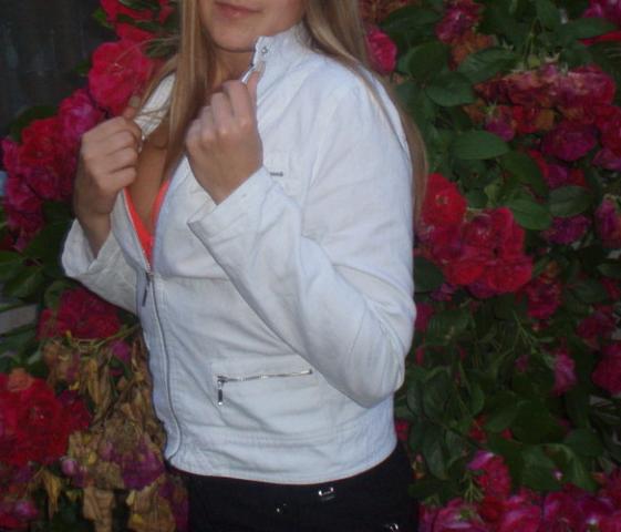 Plona striukytė, be pamušaliuko, plona kaip švarkelis. Ties petimi yra mažas įdrėskimas, ne skylutė, o tik siūliukas užkabintas (nufotografuota). Bet nežinant, nepastebėsi. Dydis s/m