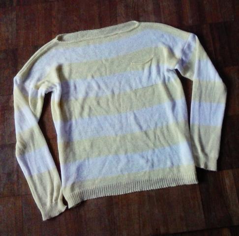 Tik vieną kartą dėvėtas, galima sakyti naujas. Man tiesiog neprilipo jis. Dydis nuo XS iki S/M, jis šiek tiek oversize bet nėra visiškai apsmukęs, turi mažą kišenėlę. Labai tinka vėsesnėmis vasaros dienomis.