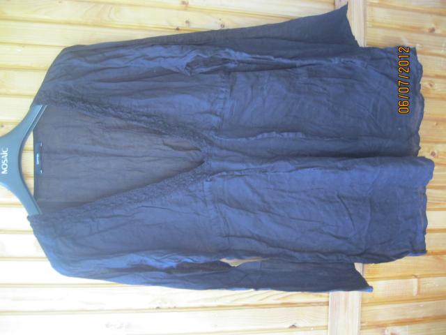 Plonyte, ilgomis rankovemis palaidinuke. Po krutine yra raisteliai,galima kiek reikia suverzti. Nuotraukoje tik susiglamzius,bet,jei isskalbti,tai tikrai puikiai atrodo.