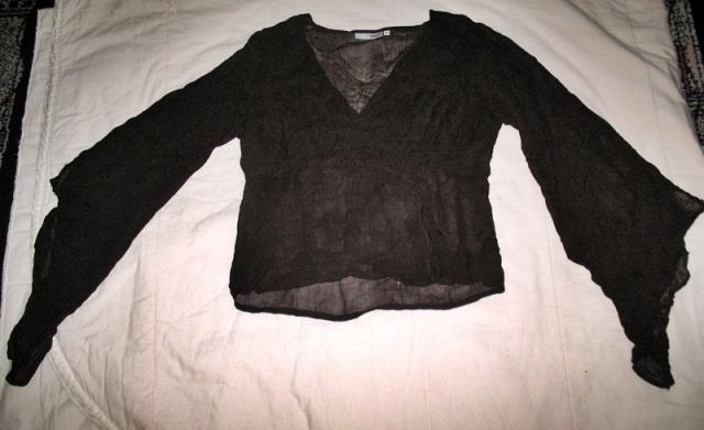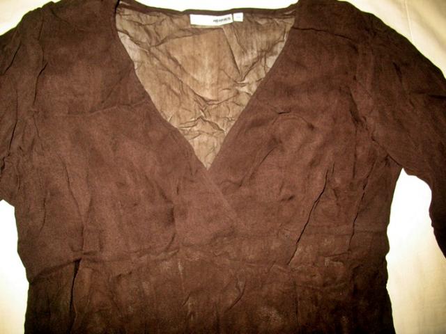 išties labai daili, bet man didoka. plona, ruda, permatoma medžiaga, rankovės smarkiai išplatėja ir yra kirptos kampu. persiprašau, kad fotografuodama neišlyginau