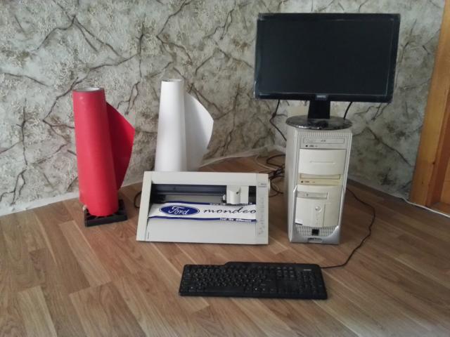 Parduodu ploteri-braižytuvą su PC ir reklamine medžiaga.Tinkantis pradėti smulkų versla namie ar šiaip reklaminiai veiklai.Naujas monitorius.Viskas veikia puikiai nesunku išmokti atlikti veiksmus.Yra įdėtas naujas peiliukas 45 laipsiu kampu.Pevelės yra ir ant audinių klijuojamos ir ant plastiko,stiklo ir t.t.Viską duodu komplekte.Ploterio storis kurį pjausto iki 30cm ,ilgis begalinis .Tel.862718099