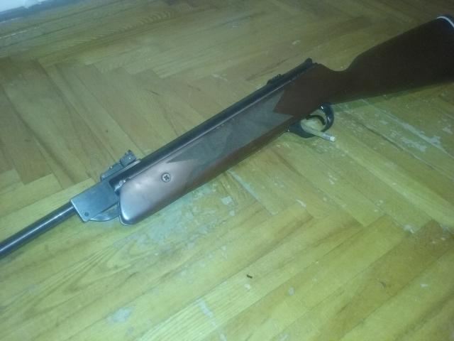 Apynaujis pneumatinis šautuvas Hatsan mod. 35S, skirtas laisvalaikiui, sportui, šaudymo įgūdžių lavinimui. Šautuvas užtaisomas lenkiant ginklo vamzdį. Buožė pagaminta iš aukštos kokybės medienos. Šautuvo taikikliai yra šviesolaidiniai, kurie palengvina taikymasį. Reguliuojamas nuleistuko jautrumas. Automatinis saugiklio užvedimas, užtaisant šautuvą. Galima montuoti optinį taikiklį. Pirktas š.m. vasaros pabaigoje. Iššaudyta +-500 kulkyčių (1 pakuotė).