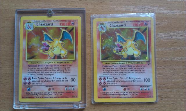 Sveiki, parduodu retas foil Charizard dvi kortas, viena is Base Set kita is Base Set 2, 1996 metai. Stovis - kaip naujos, gerai islaikytos. Abi 130lt.