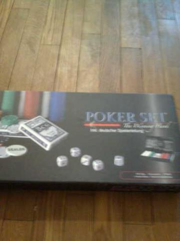 300 zetonu. dalintojo zetonas. 5 kauliukai. kortos jau pasibaigusios. viskas patogioi dezuteje.
