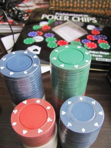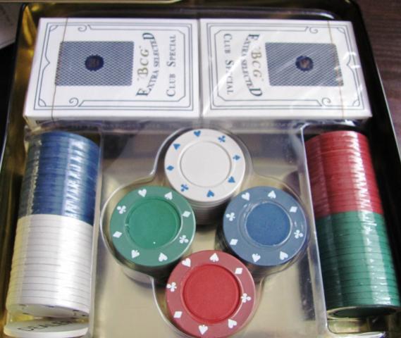 Professional POKER CHIPS: 100profesionalių pokerio žetonų 2 kortų kaladės Dealer žėtonas