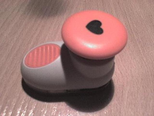 Nedidelis, mielas, originalus popieriaus spaustukas. :D spaudžia širdelės formos skylutes.