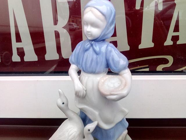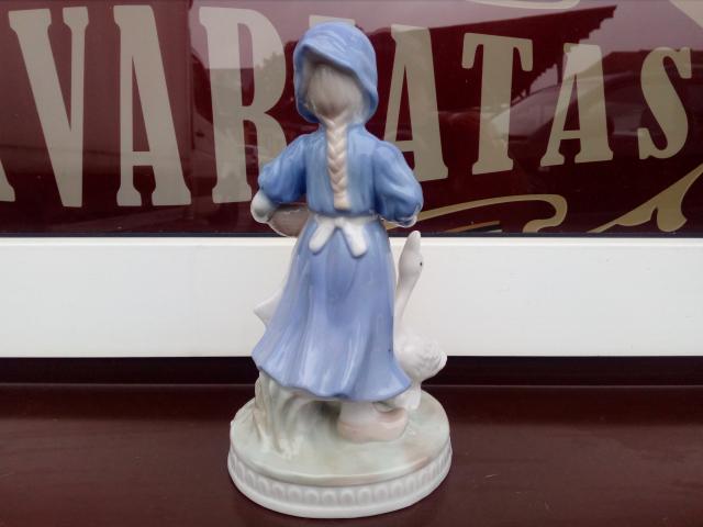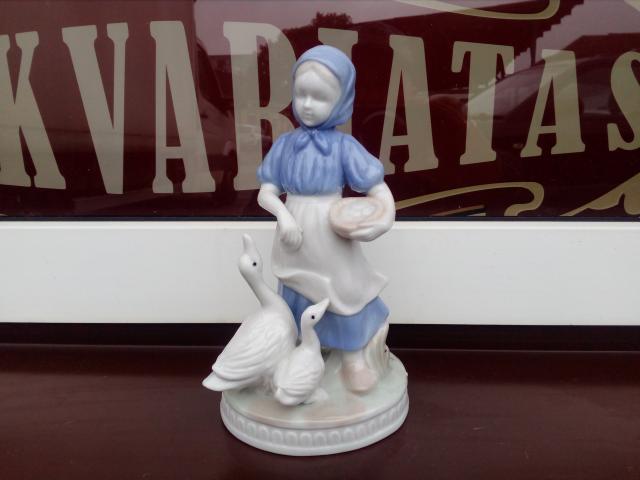 Porcelianinė statulėlė Mergaitė, lesinanti žąsis.