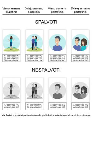 Portretų piešimas pagal užsakymą iš nuotraukų ant pasirinkto lapo formato (A4, A3, A2), tai puiki dovana bet kokia proga - gimtadienio, vestuvių, sukaktuvių! Visi portretai piešiami akvarele, pieštuku ir markeriais ant akvarelinio popieriaus. www.facebook.com/Šaržų-portretų-piešimas-ir-drobių-spauda-108758728502574 Panevėžys, Klaipėdos g. 50