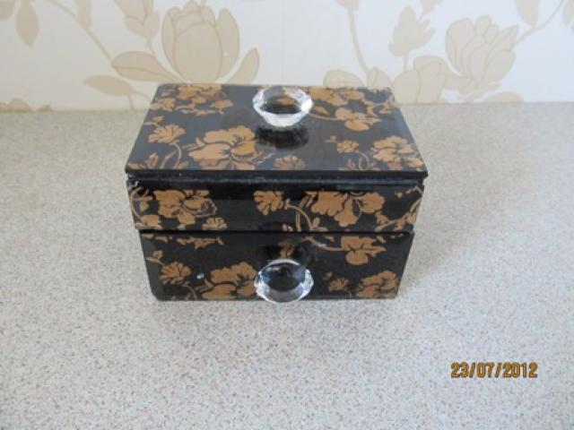 Nedidelė, be galo žavi papuošalų dėžutė :) 12 cm ilgis, 8 cm plotis ir ~8 cmauktis