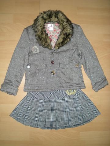 Stilingas, prabangus swarkiukas su idomiom sagom, sage ir kailiuku. Taip pat labai dailus geletas pamusaliukas. Prekinis zenklas: NEW LOOK. Amzius parasytas 9-10 metuku, ugis 134-140cm. Swarko ilgis nuo peties 38cm, krutine 80cm, peciu linija 38cm, rankowe be peties 53cm. Moketa buwo 269lt. Parduodu uz. 70lt. Bukle ideali.