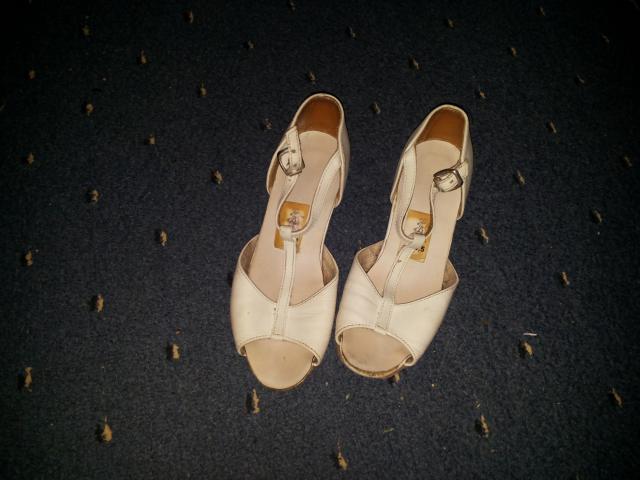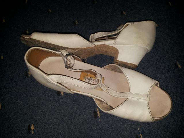 Dydis 20,5 Vidpadis 20 cm Naturalios odos ,baltos spalvos tvarkingi bateliai,puikiai tiks treniruotems ar pradedanciajai sokti . Pirkti nauji kainavo brangiai. Galima atsiimti ir Vilniuje susitarti reiktu is anksto.
