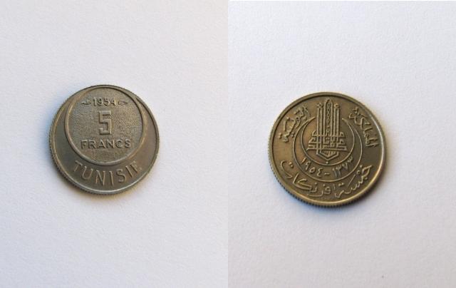 Prancūzijos kolonija Tunisas 5 frankai (francs) 1954 m