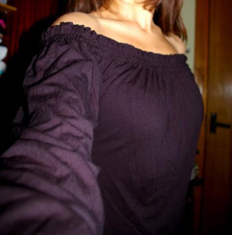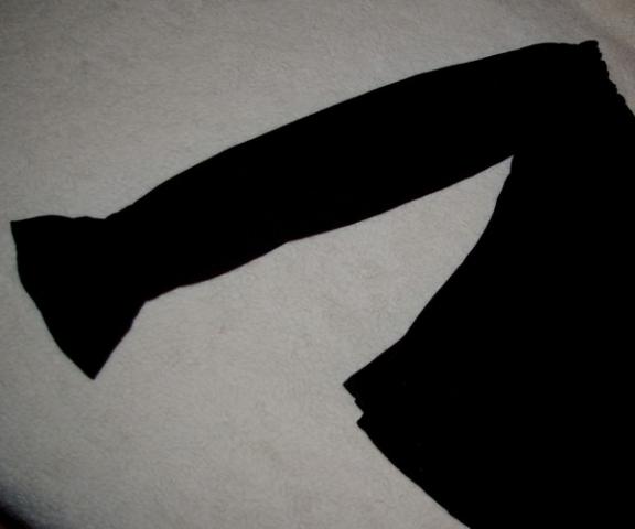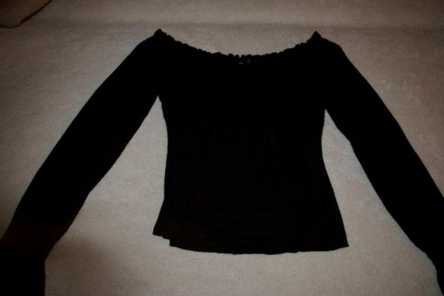 Prancūziška juoda elegantiška palaidinė, platėjančiomis rankovėmis bei parauktu kaklu. Galima nešioti 2 variantais: paprastai ir kad matytus apnuoginti pečiai. Atrodo išties prabangiai ir gražiai.