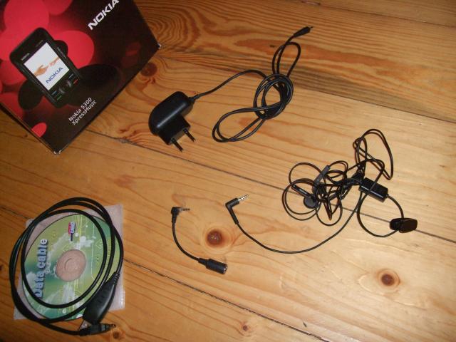 USB laidas su disku, įroviklis, ausinės bei adapteris, kad prijungti prie bet kokių ausinių.