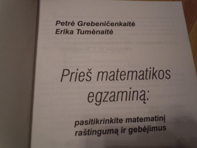 Grebeničenkaitė P., Tumėnaitė E. Prieš matematikos egzaminą: pasitikrinkite matematinį raštingumą. 1999 m. "Šiaurės Lietuva", 140 psl. Uzduotys yra duotos su atsakymais