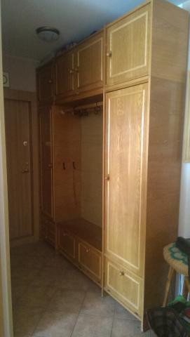 Parduodu prieškambario spintą. Ji yra 2 durų (per vidurį yra atvira erdvė drabužiams), su viršuje ir apačioje esančiomis spintelėmis. Kreiptis telefonu +37068614133
