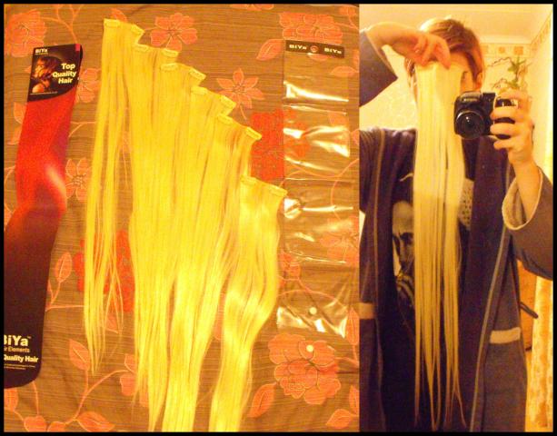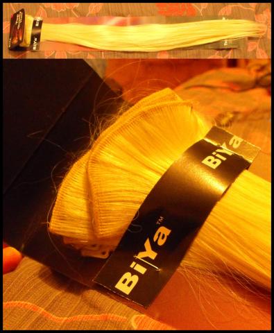 Pirktas is eBay , uzsidejus buvau tik 3 kartu tik pasiziuret , bet taip niekad ir nepavyko nusibalint iki tokios spalvos tad parduodu . Matosi nuotraukoje geriau spalva . light blonde / platinum , kazkas tokio, kitose bloga kokybe nes vakare namie fotkinta , o fotikas neisgeriausiuju xD dabar jie graziai uzpakuoti ir laukia naujos seimininkes kuri juos nesiotu dazniau nei as per metu 3 kartus tik uzsideti buvo :DD 6 sruogos kiekvienama is ju po 2 ektukus , pamirsau tik ismatuot ilgi bet nuotraukose matosi
