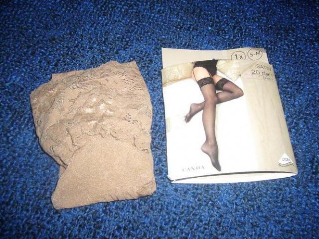 Visiškai naujos prisegamos kojinės, kūno spalvos, blizgios, 20 denų, S dydis