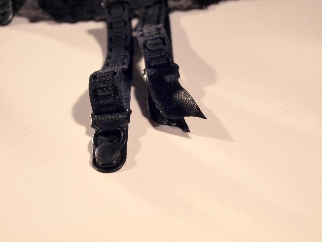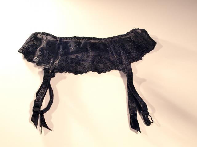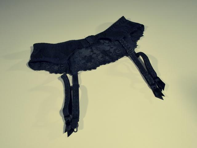 Juodas prisegamų kojinių diržas, kokybė gera, tik vieno kaspinėlio trūksta. Beveik nedėvėtas. XS-S dydžio