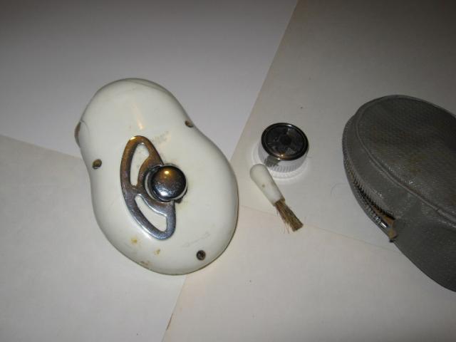 Prisukama skutimosi mašinėlė. Defektuota, bet pataisoma. Gedimas nesudėtingas, užstrigusi spyruoklė.