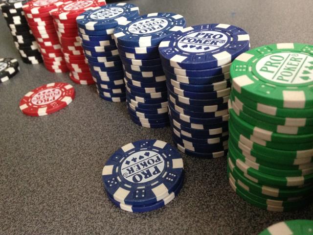 Parduodami naudoti, aukštos kokybės pokerio žetonai.