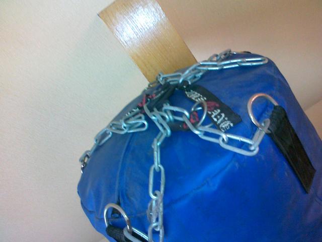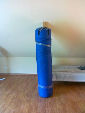 Profesionali bokso kriause apie 180cm ilgio, su grandinemis virsuje, melyna, odine, nesukritusi, nepraplesta, tvarkinga. Svori apie 40-50 kg. Orentacine kaina apie 300 lt Ta lipni juosta tik laiko maisa kad nenukristu :)