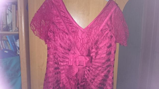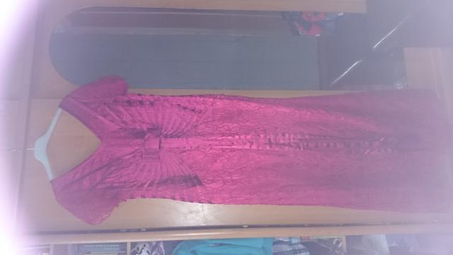 Puikios būklės, viena karta dėvėtą ryšiai raudona dengta gipiuro su pamušalu, turi nezymu blizgesį,optiskai lieknina