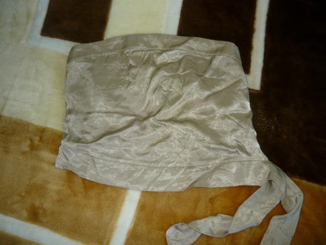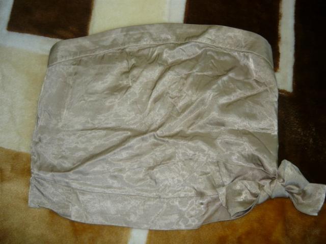 Šone susiriša dailiu kaspinuku, be petnešėlių. S-M.
