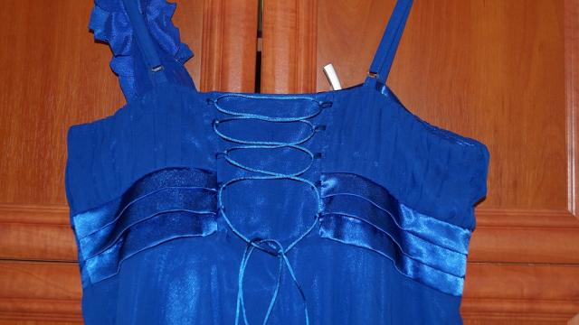 viena karta deveta per vestuves,be jokiu defektu ,nugaroje suvarstoma tai galima reguliuoti dydi,ryskiai melynos spalvos