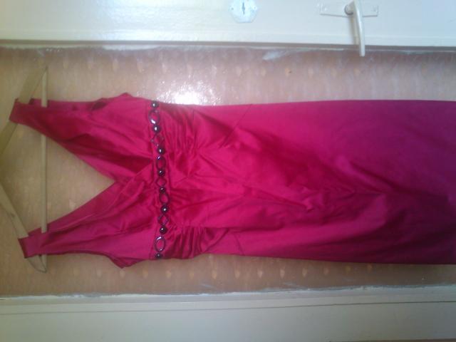 Progine suknute, deveta tik karta per vestuves. Moketa 130lt Ilgis 98cm Per krutine 41x2cm Per klubus 46x2cm Yra skeltukas nugaroje apie 20cm.