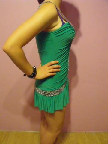 Proginė (labai trumpa) suknelė, aqua spalvos, dydis S, dėvėta vos kelis kartus. 8% elastano, 92% poliesterio. Dydis M/L, bet tinka merginoms, kurių dydis S/M labiau.