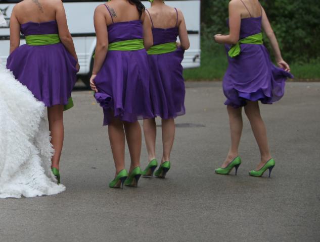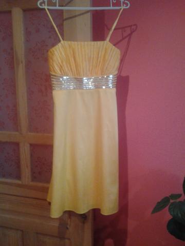Veoletinės suknytės yra 2 ,vienos suknytės krūtinės apimtis 97cm, liemens 84cm ; antros krūtinės apimtis 104cm,o liemens apimtis 89cm; 12-14 dydziai. mažesnė suknytė nedėvita nė karto, o didesnė viena kartą. Abi suknytės su petnešėlėmis, bet jas galima nusiimti.Suknytė labai patogi, nesmukčioja, nes nugaroje susisega gumyte, kurios visai nesimato ir tvirtai laikosi. Yra ir žali kaspinėliai. Geltona suknytė taip pat dėvėta tik vieną kartą. Geltonos suknytės krūtinės apimtis apie94cm, liemens 84cm. Suknel