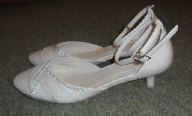 Puošnūs viena karta dėvėti balti bateliai... Nedidelis kulniukas, smagūs ir patogūs :)