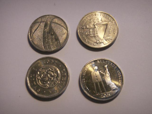 1 litas. turiu sias monetas: 6 vnt -vilnius europos kulturos sostine 1vnt -baltijos kelias 2 vnt-lietuvos didziosios kunigaikstystes valdovu rumai 1 vnt-zalgirio musis 1vnt-europos krepsinio cempionatas